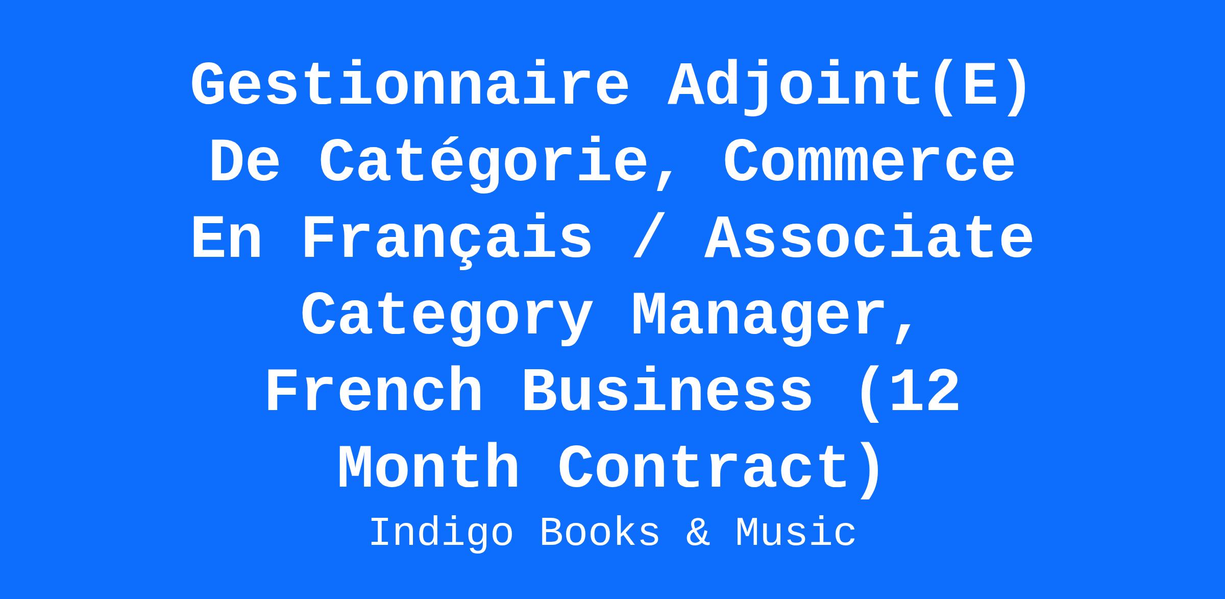 The Associate Category Manager, French Business is accountable for creating and implementing the vision, strategy and direction for specific categories within the total French portfolio as well as supporting and executing the overall French portfolio product and category strategy. They will strive to ensure that Indigo is a respected conduit for reading inspiration and French language book purchases in Canada. The Associate Category Manager will execute on Reading strategy and is responsible for driving growth and profitability within their programs and select categories. They are also responsible for the development and growth of the French language local products assortment.